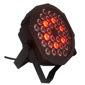 - Iluminação Potente: Equipado com 36 LEDs de 1 watt, este refletor oferece uma poderosa combinação de cores RGBW (vermelho, verde, azul e branco) para criar uma ampla gama de efeitos visuais.